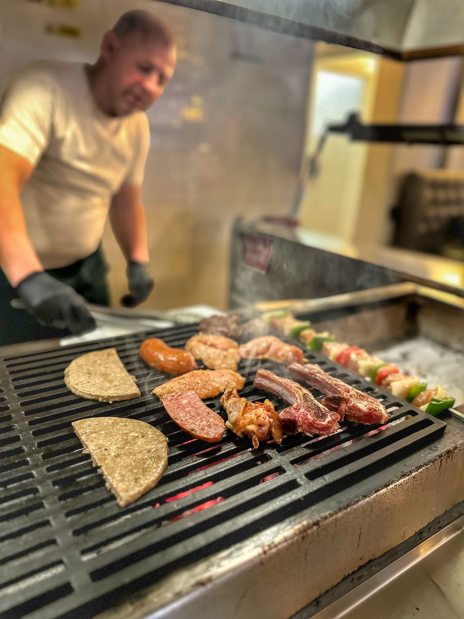 For the main course, we shared the Mixed Grill for two. This was a generous and well-executed platter, featuring chicken, lamb, pork, beef and sausage, all expertly cooked by Emiljo on the grill, just metres from where we were sat. Each meat was packed full of flavour and prepared with the perfect seasoning to accompany, making it their flagship dish perfect for sharing.